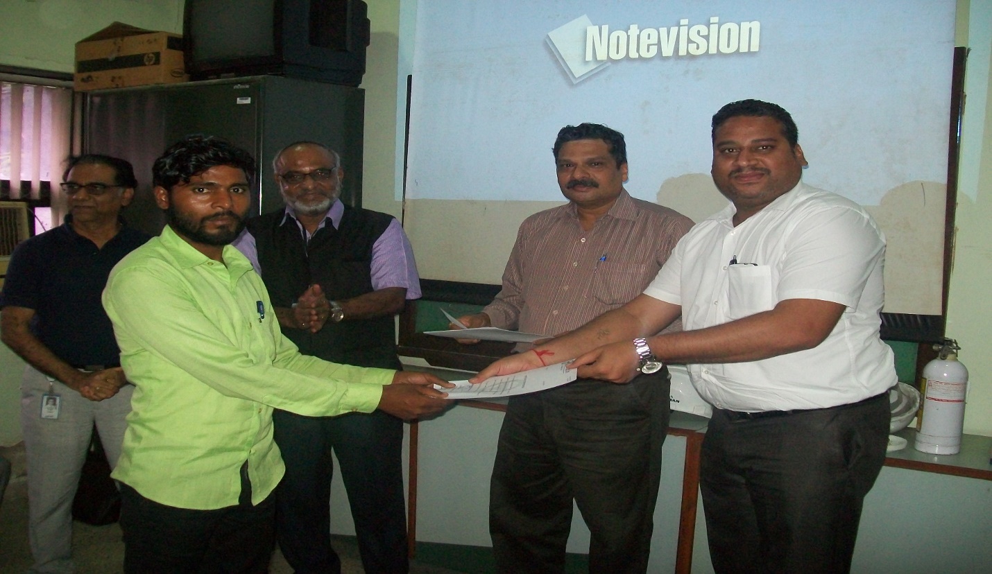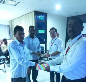 8 th Sept 2019, At a session in Lubrizol, Motor Mallik and Mr. Marathe of the Corporate handing over the participation certificate to a Driver Delegate.