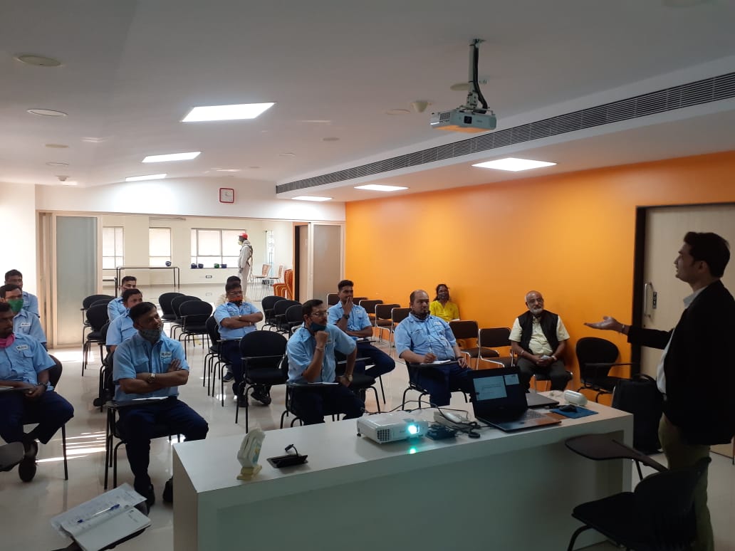 Dr. Samir Pachpute ( ITM ) training Ambulance & Fork Lift drivers at Galaxy Surfactants Ltd. Name of the trining program – ROSE (Road Occupational & Safety Excellence) on 24 Feb’2021 at their Taloja facility.