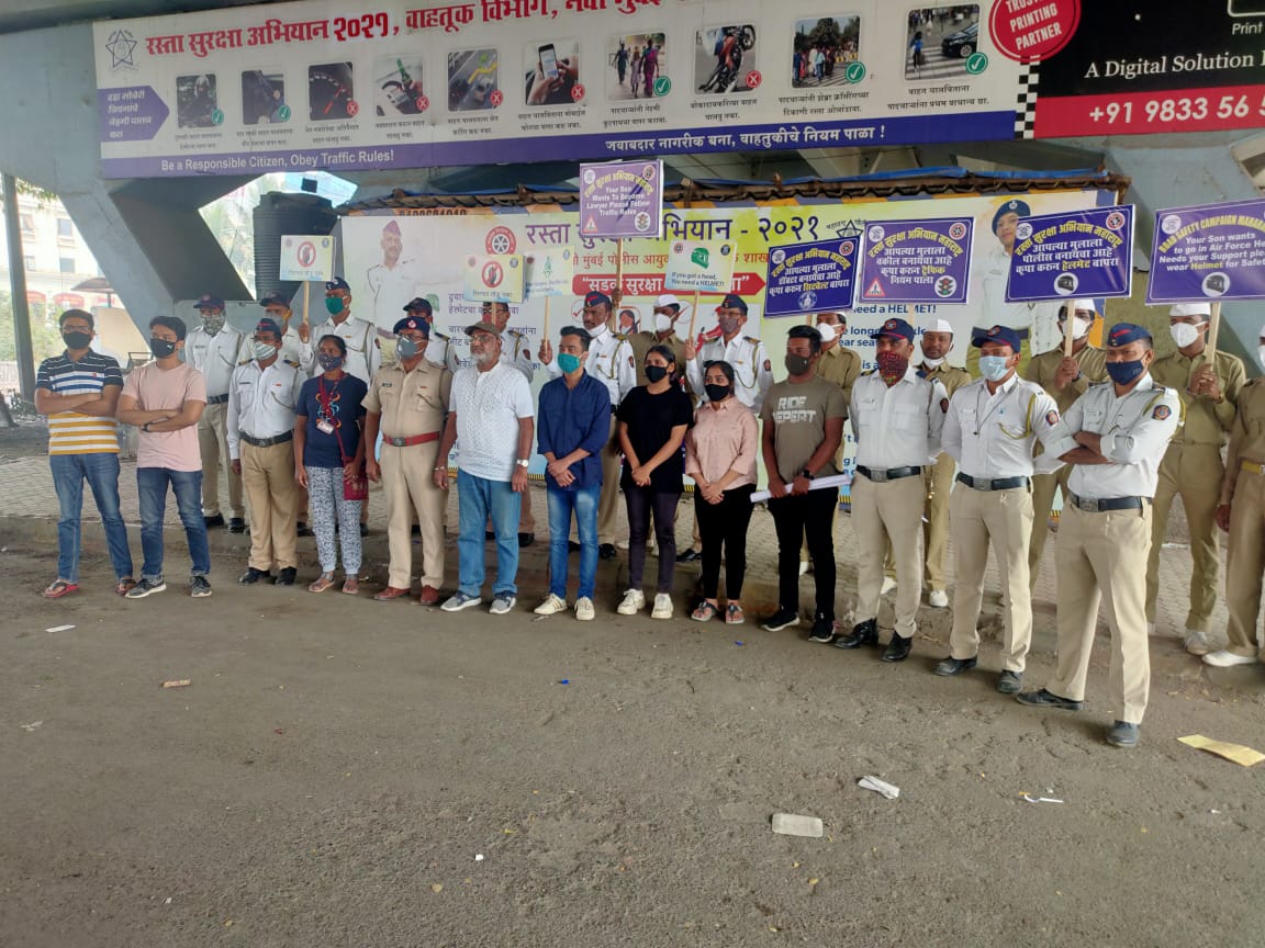 13th feb’2021 with Khargahr Traffic police on the occassion of the ROAD SAFETY MONTH. Event partner is ITM Institute, Kharghar.